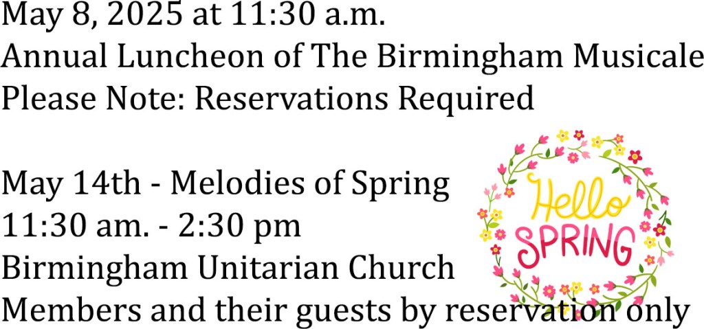 The Birmingham Musicale is affiliated with the Michigan Federation of Music Clubs and the National Federation of Music Clubs.